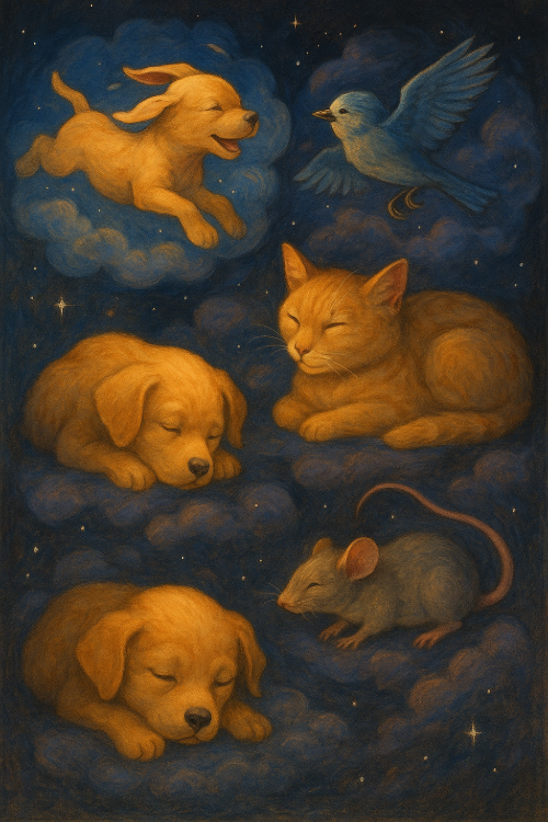 동물들도 꿈을 꾸는 것으로 보이며, 그 꿈은 단순한 환상이 아니라 생존을 위한 학습과 기억 정리에 중요한 역할을 한다. 강아지가 꿈속에서 뛰고, 고양이가 사냥 동작을 하고, 새가 날갯짓을 하는 것은 낮 동안의 경험을 정리하고 다음 행동을 준비하는 과정일 수 있다. 인간과 마찬가지로, 동물들에게도 잠과 꿈은 세상을 이해하고 적응하는 또 다른 통로인 것이다.