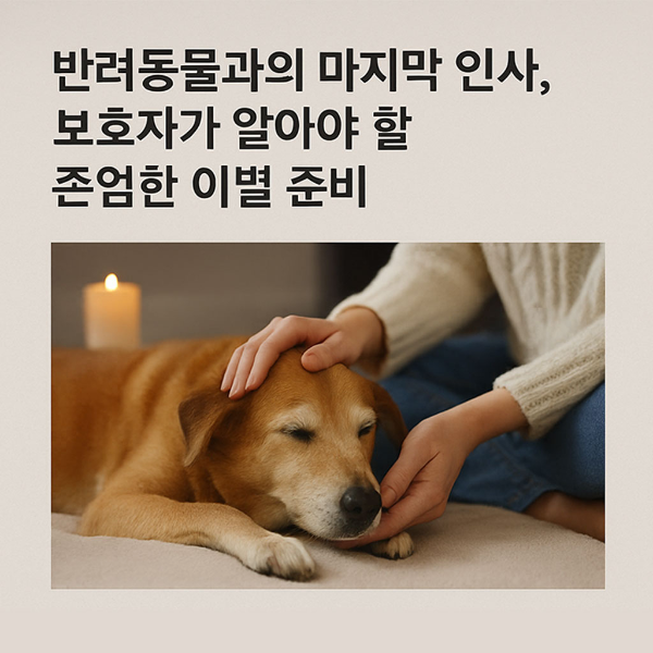 반려동물과의 이별은 끝이 아니라 새로운 형태의 동행입니다. 함께한 순간들은 보호자에게 평생을 간직할 소중한 기억으로 남으며, 그 기억은 시간이 지나도 변하지 않습니다. 마지막 인사를 존엄하고 따뜻하게 준비하는 것은 반려동물에 대한 사랑과 책임을 완성하는 중요한 단계입니다. 보호자는 이별을 준비하며 슬픔을 자연스럽게 받아들이고, 새로운 일상 속에서 반려동물과의 행복했던 순간을 마음속에 간직하며 살아가야 합니다. 오늘부터라도 작은 준비를 시작해 보세요. 마지막까지 함께할 수 있는 방법을 고민하고, 평생의 친구에게 진정한 사랑을 전할 준비를 하는 그 과정은 보호자에게도 큰 위로와 성장의 기회가 될 것입니다. 그 사랑은 끝나지 않고, 언제나 마음속에서 함께 숨 쉬게 될 것입니다.