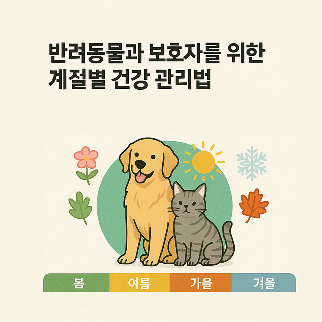 계절 변화는 반려동물의 건강과 행동에 큰 영향을 미칩니다. 봄철 알레르기와 진드기, 여름철 더위와 탈수, 가을철 건조함과 면역력 저하, 겨울철 저체온증과 관절 문제 등 각 계절마다 주의해야 할 점이 다릅니다. 본 글에서는 사계절별로 반려동물을 건강하게 돌보는 구체적인 관리법과 주의사항을 전문가의 시각에서 안내합니다. 보호자와 반려동물이 함께 사계절을 안전하고 행복하게 보내기 위해 지금부터 실천 가능한 관리 팁을 확인해 보세요.