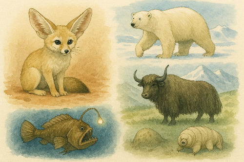 물이 없는 사막, 얼어붙은 극지방, 산소 희박한 고산지대, 빛조차 없는 심해. 인간이라면 생존 불가능한 이 혹독한 환경에서도 동물들은 살아남는다. 이 글에서는 극한 환경에 적응한 동물들의 생존 전략과 진화적 특성을 관찰기록처럼 자세히 살펴본다.