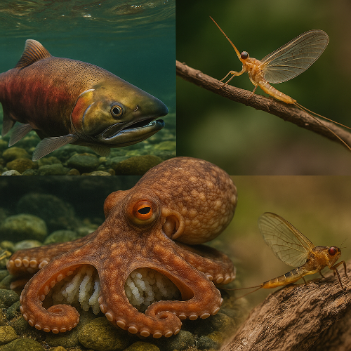 생애 단 한 번의 번식으로 생을 마치는 전략은 잔인해 보일 수도 있지만, 자연에서는 종족을 유지하기 위한 강력한 생존 방식이다. 연어가 마지막 힘을 다해 강을 거슬러 오르는 모습, 문어 어미가 알을 품고 먹지도 않은 채 생을 마치는 모습은 희생이자 헌신의 극치다. 이 과정에서 남겨진 생명들은 다음 세대로 이어져 자연의 순환을 이어간다. 죽음으로 생명을 잇는 방식, 그것이 단회 번식의 본질이다.