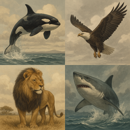 자연계에서 ‘최상위 포식자’라는 개념은 단순히 강한 동물을 뜻하지 않는다. 이는 먹이사슬의 정점에 서 있으며 다른 동물에게 거의 사냥당하지 않는 존재를 가리킨다. 즉, 천적이 없는 동물이다. 이들은 독보적인 힘과 능력을 바탕으로 사냥을 통해 생존하며, 동시에 먹이사슬 전반의 균형을 유지하는 중요한 역할을 수행한다. 사자는 ‘밀림의 왕’으로 불리며, 집단 생활을 통해 대형 초식동물을 제압한다. 범고래는 바다의 지배자로 불리며, 뛰어난 협동 사냥 능력을 바탕으로 바다의 다른 포식자들조차 위협한다. 독수리는 하늘의 지배자로서 예리한 시력과 빠른 비행으로 공중의 사냥을 완성한다. 상어는 수억 년 동안 바다의 최상위 포식자로 존재하며, 진화의 산 증인이라 불린다. 이러한 동물들은 생태계 내에서 단순히 힘을 과시하는 존재가 아니라, 약한 개체를 제거하고 건강한 개체군을 유지하는 ‘자연의 조율자’ 역할을 한다. 따라서 최상위 포식자는 단순히 무적의 사냥꾼이 아니라, 생태계 전체를 지탱하는 숨은 기둥이라고 할 수 있다.