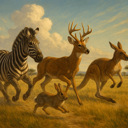 3. 속도와 반사신경 - 가젤: 최고 시속 80km - 토끼: 순간 가속력과 예측 불가능한 방향 전환 - 캥거루: 도약을 통한 속도 유지와 방해물 회피 이처럼 초식동물의 속도는 생존 그 자체다. 직선 속도뿐 아니라 지그재그 회피 능력은 포식자의 예측을 무력화시킨다.